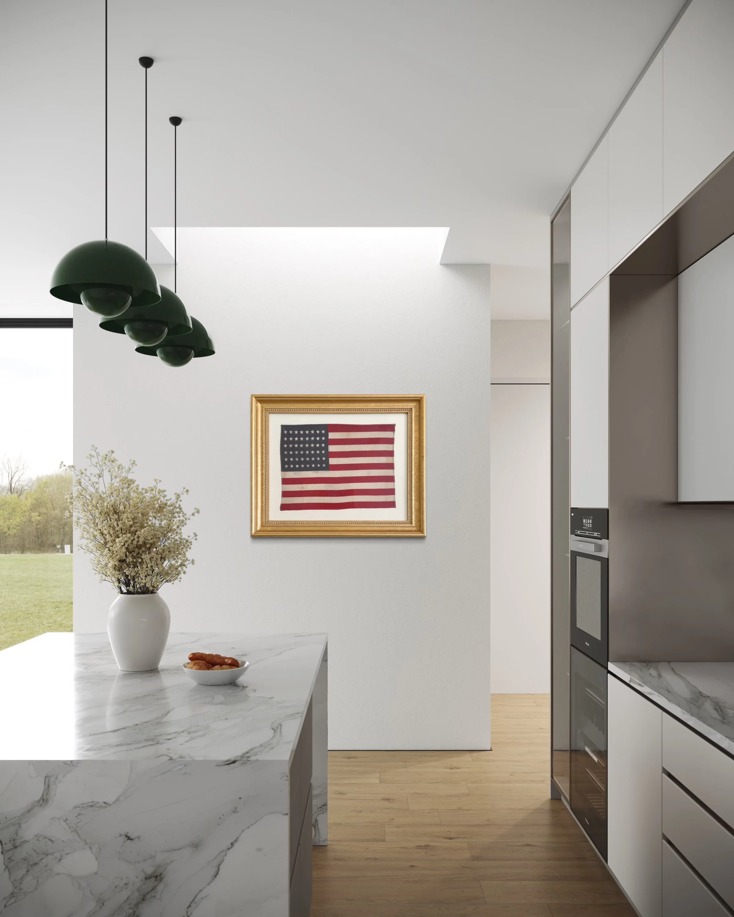 An antique 48-star flag made of linen. Very good condition with light staining. Dates to the 1950s.